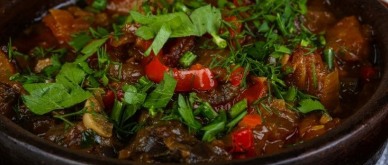 Ajapsandali is a beloved dish in Caucasian cuisine, particularly in Georgian, Armenian, and Azerbaijani culinary traditions. This hearty and flavorful vegetable stew is primarily made with eggplant, potatoes, tomatoes, and peppers, combined with a variety of aromatic spices that give it a distinctive taste. The vegetables are often slow-cooked together to create a rich and harmonious blend of flavors, making it a comforting and satisfying meal. Ajapsandali is not only popular for its taste but also for its versatility, as it can be enjoyed hot or cold and served as a main course or a side dish. It represents the vibrant and diverse flavors of the Caucasus region, reflecting a deep connection to locally grown produce and traditional cooking methods.