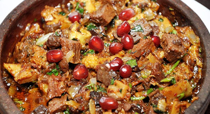 Kuchmachi is a traditional Georgian dish made from chicken liver and heart. It is enriched with walnuts and garnished with pomegranate seeds, creating a flavorful and vibrant blend.